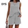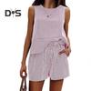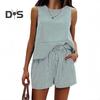 Acest set elegant din 2 piese este confecționat din poliester spandex respirabil și moale, fiind perfect pentru primăvară, vară și toamnă.. Designul cu dungi în culori solide este versatil și potrivit pentru diverse figuri și vârste.. Hanoracul casual are guler rotund și design fără mâneci, asigurând confort și stil..