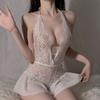 Lenjerie de corp albă, fără crotch, sexy pentru femei, set de sutien gol din dantelă, costum erotic, rochie de păpușă de pluș, sutien deschis în V adânc, set de lenjerie porno