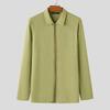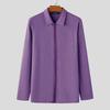 INCERUN Men Lapel Neck Long Sleeve Clasp Buttons Solid Color Fitted Casual Tops