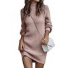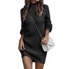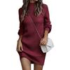 Bodycon Sweater Dress Long Lantern Sleeve Stand Collar Pure Color Ribbed Mini Sweater Dress for
