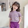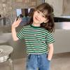Girls' Short Sleeved T-shirt Striped Summer Children's Korean Summer Outfit Half Sleeved Girls' Thin Top T-shirt