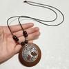 Accesorii din bumbac și in vintage, vânt etnic, coreeană, din lemn, cu pandantiv, colier lung pentru femei, bărbați, bijuterii cu lanț de pulover