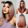 Peruci scurte din păr sintetic Bob, mixte, maro deschis, blond Ombre, drepte, pentru femei de culoare afro, pentru petrecere, rezistente la căldură