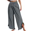 Pantaloni largi din in pentru femei, talie elastică, cu tiv cu volane, lejeră, pantaloni de plajă