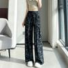 Pantaloni largi pentru femei, pantaloni casual cu nasturi, talie înaltă, pantaloni drepți