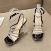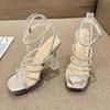 Women Sandals Crystal High Heels Square Open Toe Ankle Buckle Pumps Sexy Nightclub Party Prom Dress Shoes
