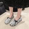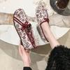 New Women's Ballet Flat Shoes Retro Chinese Women's Comfortable Soft Shoes Cotton Button Print