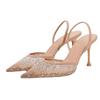 Sandale de vară pentru femei cu strasuri, plasă strălucitoare, tocuri înalte, încălțăminte elegantă slingback cu vârf ascuțit, slip-on, pantofi de petrecere pentru doamne