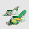 Modă de vară Papuci simpli de damă Vârf pătrat Colorat Transparent Toc înalt Papuci Pantofi de petrecere Nuntă