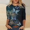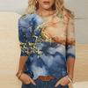 Top cu gât rotund, cu imprimeu retro 3D, la modă, casual, cu mâneci lungi, tricouri pentru femei
