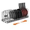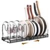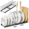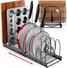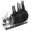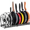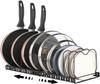 Toplife Telescoping Frying Pan Kitchen Pot Storage Rack with 10 Frying Pot Lid Holder Rack, Dividers, Pan, Pot, (Black)