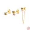 Set Elegant și Simplu din Argint Sterling S925, Set de 3 Piese, Cercei Stud cu Zircon Franjurați cu Lanț Asimetric