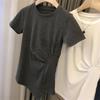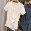 Top de damă cu talie laterală elastică, plisat, cu crăpătură și mâneci scurte - Tendință Vara 2025