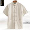 [Popular] Cămașă de vară cu mânecă scurtă pentru bărbați, stil chinezesc, in pur, retro, costum Tang