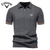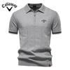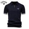 Callaway Tricou polo din lână pentru bărbați, brodat primăvara/vara 2025, stil business casual, tricou polo tricotat cu guler închis, mânecă scurtă