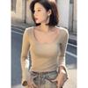 Noul Tricou de Toamnă și Iarnă Pure Wind cu Gât U, Mânecă Lungă pentru Femei cu Mânecă Corn Subțire, Cămașă de Bază