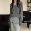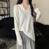 Autumn New V-neck Knitwear Long Sleeve T-shirt Women Loose Slimming Bottom Shirt with Student Top Tide