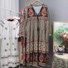 Rochie Lungă cu Imprimeu Boem de Vacanță Primăvară Toamnă Retro Haine Largi Elegante Mânecă Lungă Decolteu în V Șiret Rochii Stil Etnic Floral