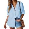 Ladies Spring Summer Long Sleeve Solid Color Soft Pocket All Match Blouse Shirt Top