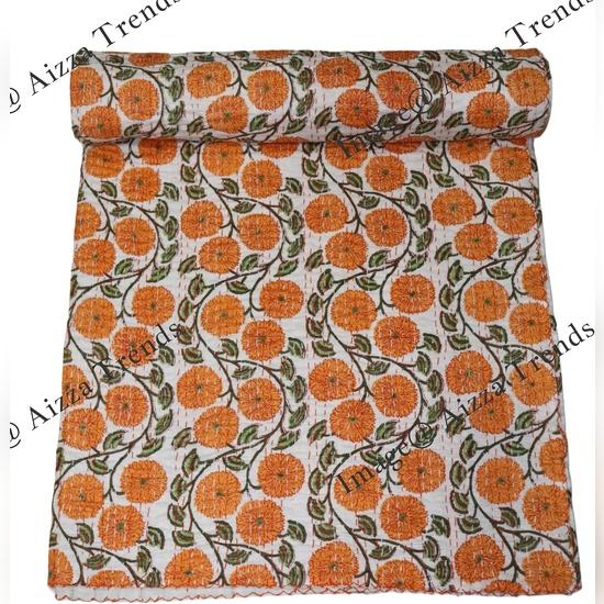 Aizza Trends Cuvertură Kantha din Bumbac Pur Imprimat Lucrată Manual - Aspect Tradițional Cuvertură de Pat Kantha Gudri - Gudri Vintage Cusute Manual