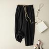 Women's Summer Retro Elastic Drawstring Waist Casual Pants Loose Harem Pants Basic Versatility Wide-leg Ankle-Length Pants