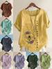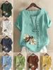 Women's Fashion Bee Flowers Prined Short Sleeve T-shirt Loose Cotton Shirt Casual Loose Summer Blouse Tops Plus Size