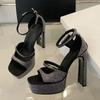 Liyke Brand Nou Cristal Stras Pătrat Toc Înalt Sandale cu Platformă Groasă Femei Modă Deget Deschis Banchet Bal Pantofi Mărimea 42