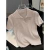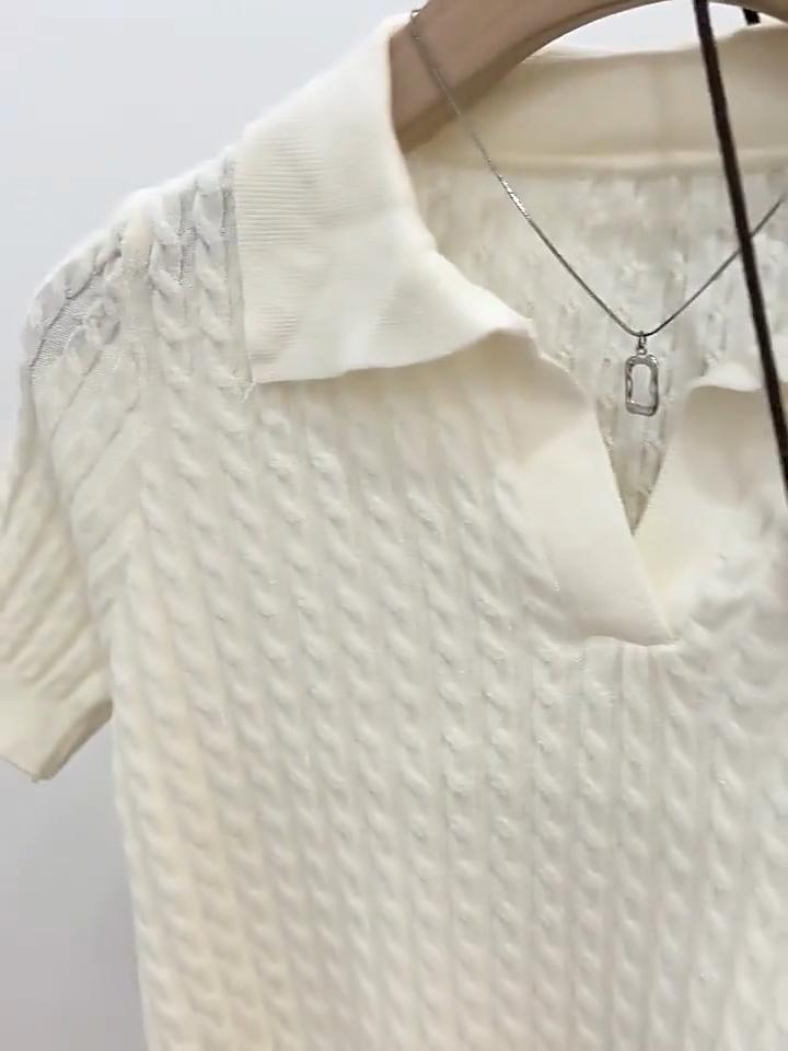 Tricou cu mâneci scurte cu mâneci scurte, cu rever, cu rever, din mătase de gheață