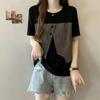 Temperament Splicing Contrasting Color Shirt for Women's Summer Design Niche and Age Reducing Versatile Short Sleeved Chiffon Top