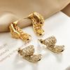 French Retro Niche Unique Design Earrings, Two Leaves Overlapping Zircon Dotted Earrings, Fashionable Commuter Women