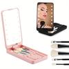 Oglindă LED pentru Machiaj cu Lumini, Set Mini de 5 Pensule, Oglindă de Călătorie Rotativă la 360°, Kit Cosmetic Portabil pentru un Machiaj Perfect în Deplasare