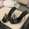 New Summer Square Toe Rhinestone Butterfly Transparent Mules Sandals Shiny Wine Glass Heel Sexy Women's High Heels Shoes