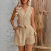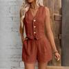 Vestă cu nasturi și pantaloni scurți de vară pentru navetiști ocazional. Set de 2 piese