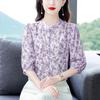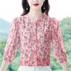 Cămașă din șifon cu mâneci trei sferturi, vară nouă, lejeră și la modă, cămașă florală cu guler ridicat, top din șifon