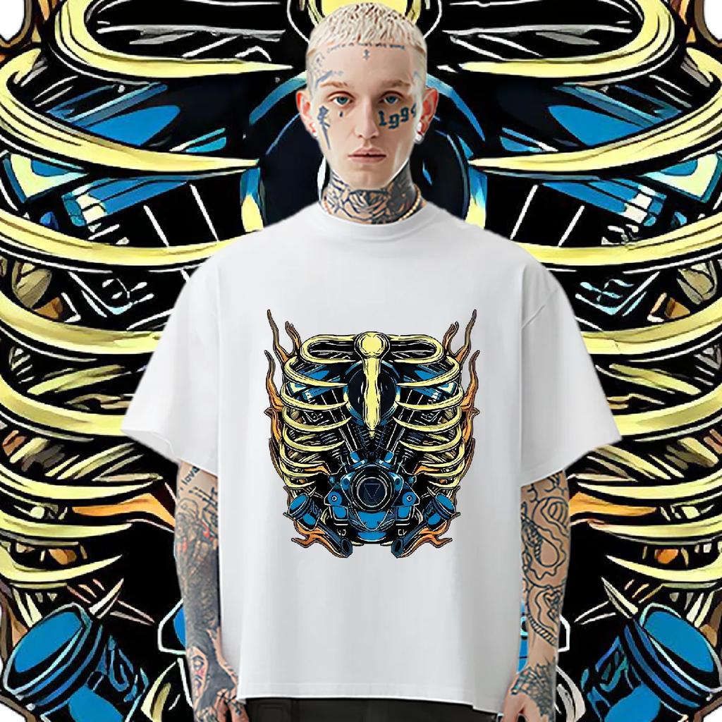 Skulls Loose Oversized Round Collar T Shirt American Retro For Men T-shirt Graphic Streetwear Tshirt Comfy Stretchy Hip-Hop Tees