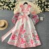 Rochie de seară elegantă vintage cu imprimeu de plasă pentru femei, rochie lungă de petrecere, casual și chic, pentru festival, Franța, nou
