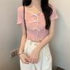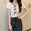 Bow Tie Wave Edge Color Collision Short-sleeved T-shirt Female Summer Slim Short Section Small Shirt Tops Casual Essential Slim Fit Pullovers Tees