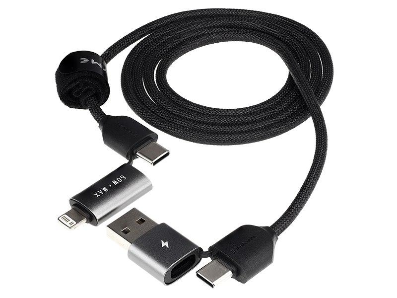 WAYME Kabel do ładowania i synchronizacji, w oplocie z mikrofibry, 100 cm (4w1) USB / C > USB-C / Lightning, max 60W