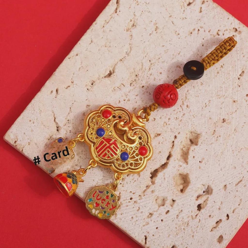 Vintage Lucky Car Keychain with Gold Beast Pendant and Peace Bell Buckle for Men & Women
