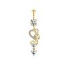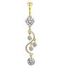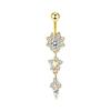 Piercing pentru buric din zirconiu și cupru cu accente aurii, cu inel argintiu și cataramă din oțel inoxidabil