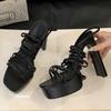 Eilyken Summer Fashion Narrow Band Ankle Lace-up Square Toe Sandals Women Platform High Heels Party Shoes