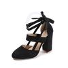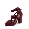 Sandale groase de petrecere cu toc înalt cu bretele sexy din piele intoarsa de vara