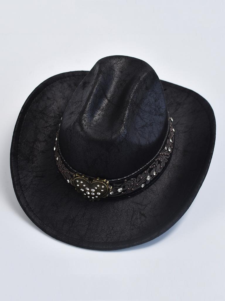 Pălării de cowboy occidentale din piele artificială PU pentru femei, pălărie de jazz vintage pentru cowgirl