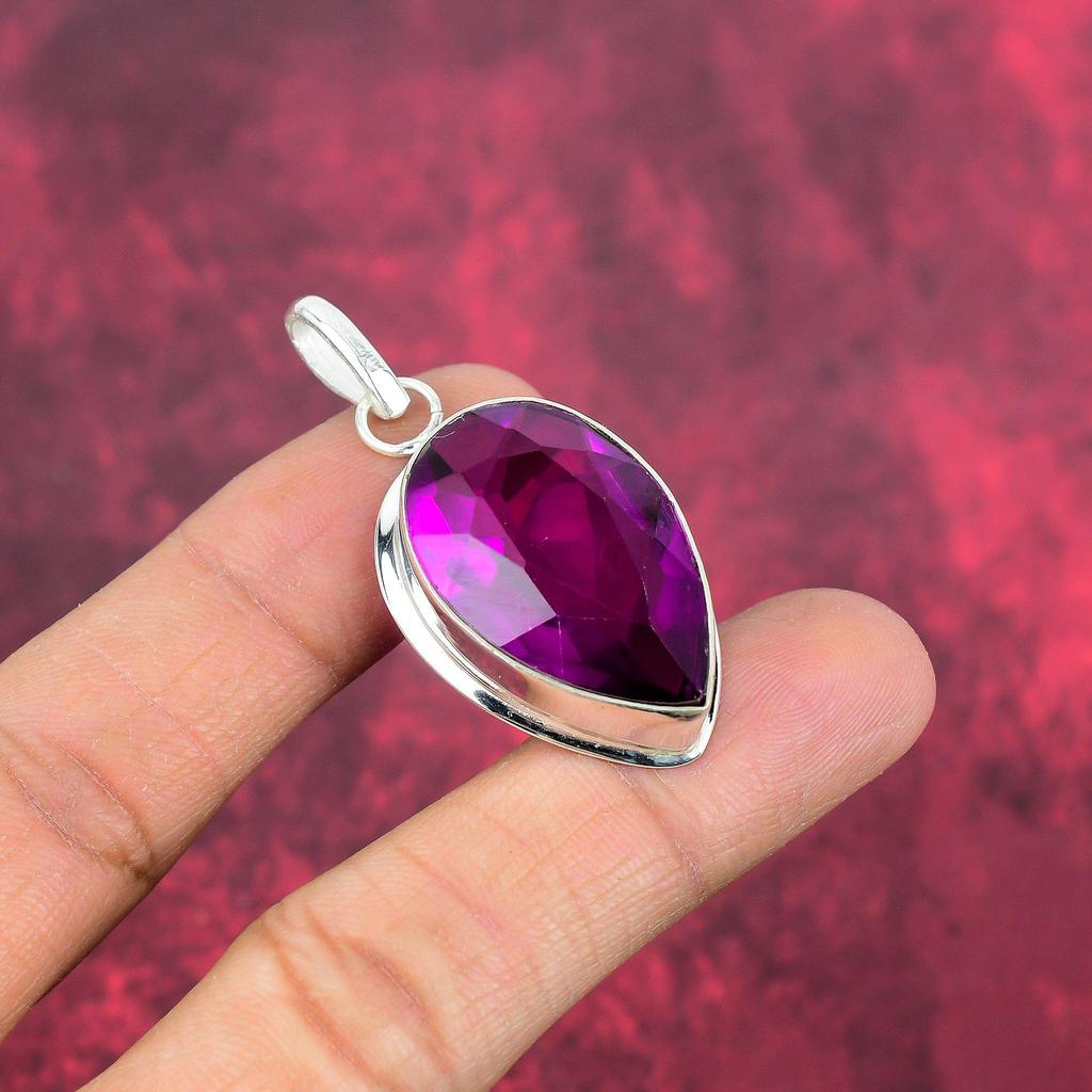 Pandantiv cu ametist roz, pandantiv cu pietre prețioase lucrate manual, bijuterii cu design unic pandantiv din argint 925