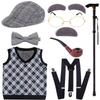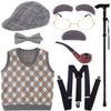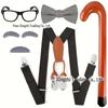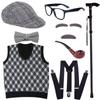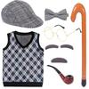 Children's Halloween Grandpa Costume Set with Beard, Scepter, Cigarette Holder, Vest, Bow Tie, and Dress Props for Performances.