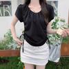 Tricou cu șnur, plisat, cu gât U, cu mâneci scurte, pentru vară, îmbrăcăminte de damă, design nou, nișă, top scurt în talie