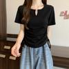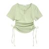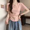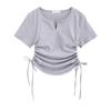 Design-sensual Drawstring Slim Short-sleeved T-shirt with Waist-exposed Sweet and Spicy Style Women's Summer New Sweet Shoulder Top
