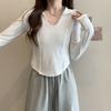 Polo Neck Long-sleeved Base Shirt for Women In Autumn, U-neck Tight Short T-shirt, High-waisted Hot Girl's Shoulder Fish Bone Top