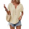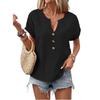 Tricou cu mânecă scurtă și guler în V pentru femei, casual, la modă, casual, cu nasturi în jos
