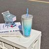 Cana cu paie cu bule dublu Rainbow Girl - Capacitate mare, design creativ pentru studenți și uz la birou/acasă